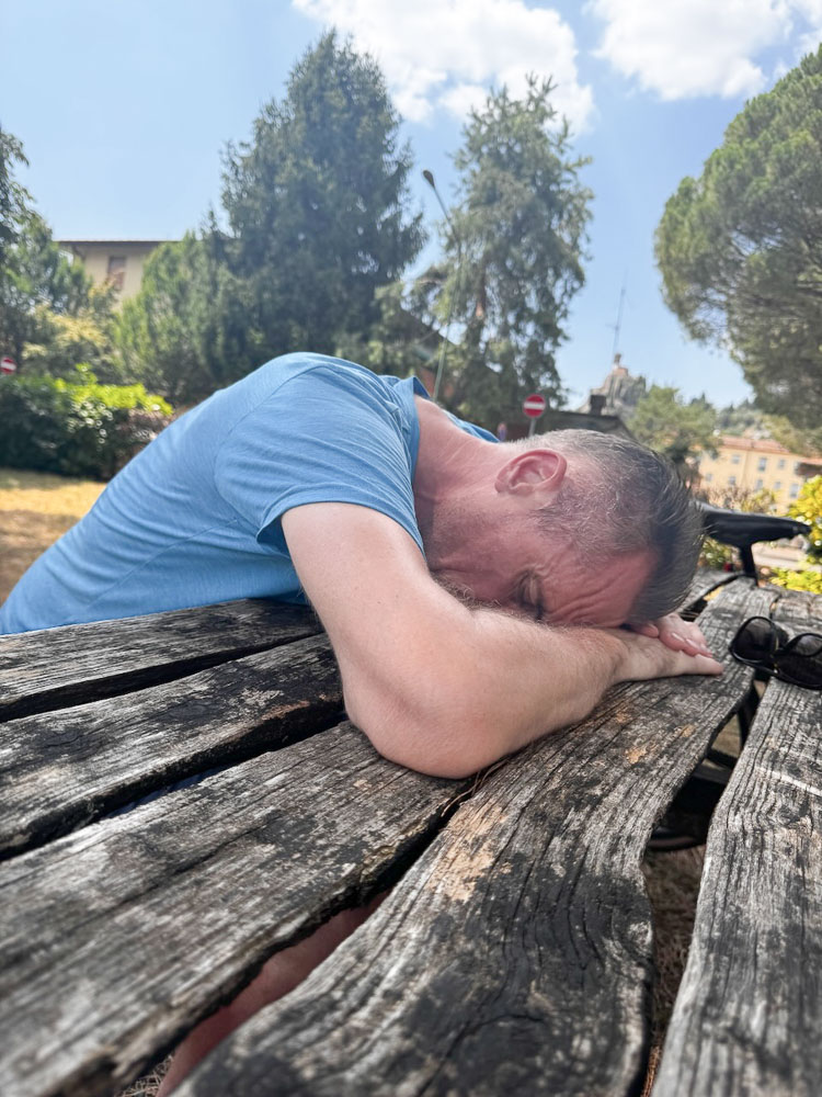 Arrividerci! Der letzte Tag! Besonders fein, wenn das Ächzen nach jedem Reisetag etwas lauter wird. Verspannter Rücken, beleidigte Wadln und