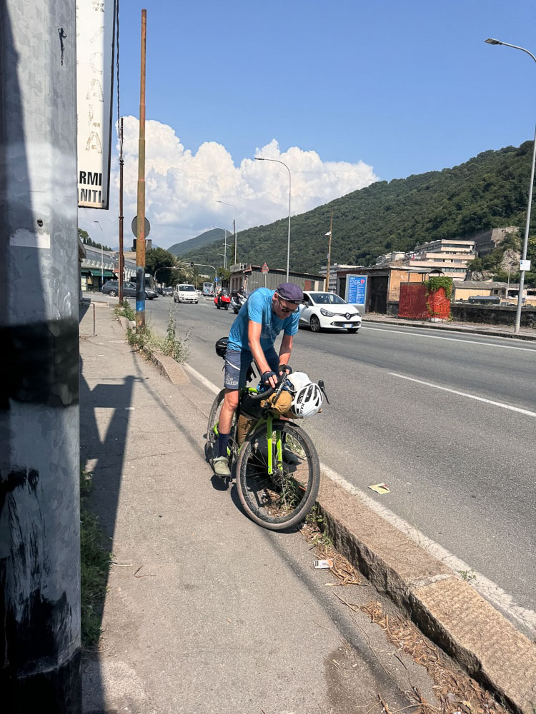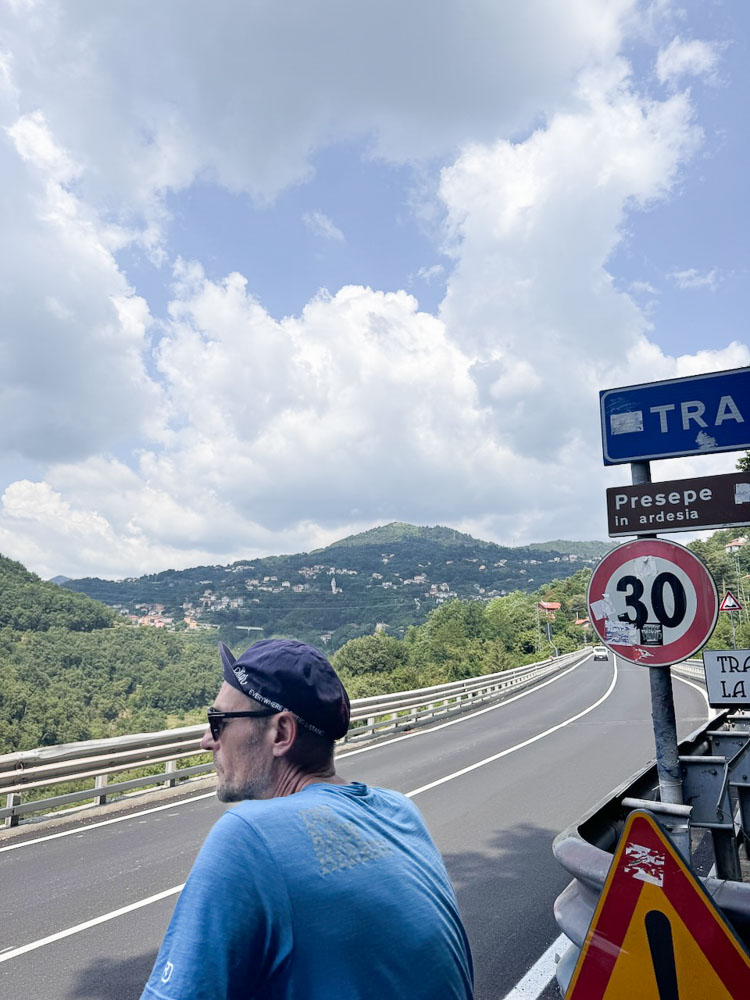 Heute haben wir keine großen Sprünge erwartet. o-Ton Stoni: wir haben nur 40 km bis Genua. Das wird ein Klacks.