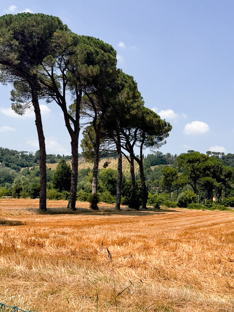 Schön langsam verändert sich die Landschaft. In der Ferne erkennen wir die ersten Höhenmeter. Morgen radeln wir Bergetappen. Wir kommen in die Toskana.