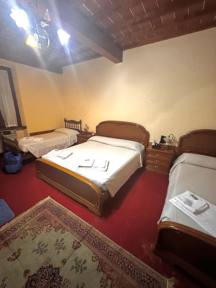 Na, dann müssen wir selber mit Händen Füße nach einer Bleibe fragen. Is aber sehr lustig und sind wir in einem Albergo – ein Klassiker des Italien Urlaub der Achtzigerjahre untergekommen. Uns gefällt’s. It’s a Roadtrip. Einmal so und einmal so.