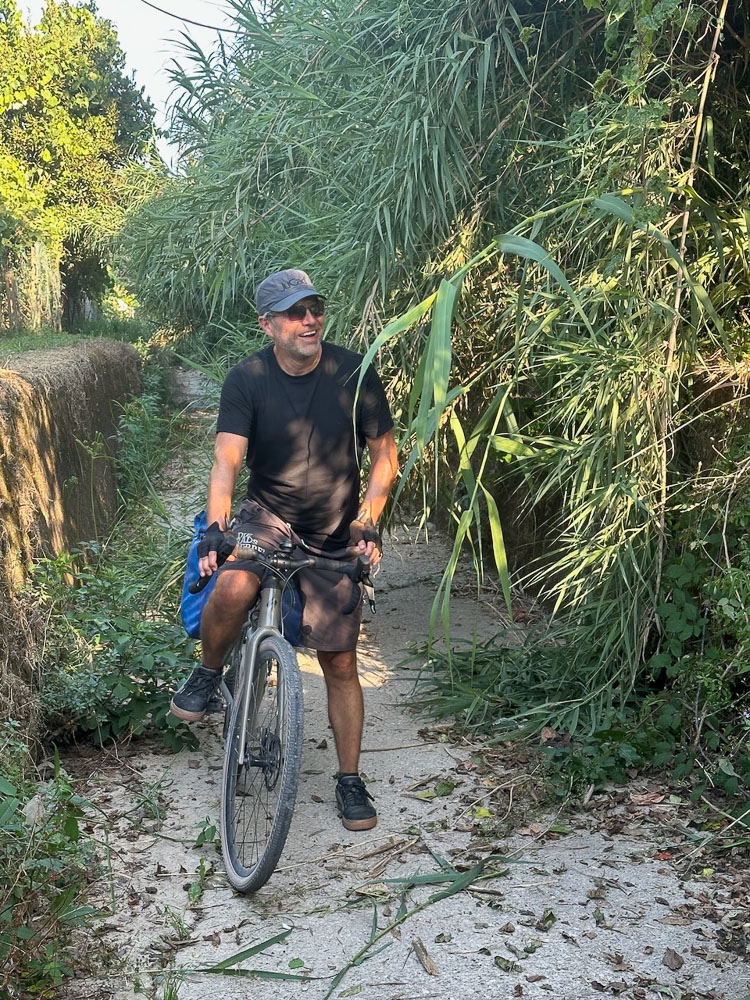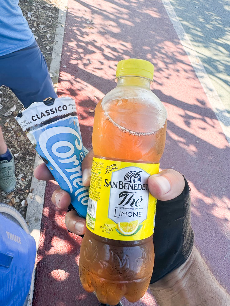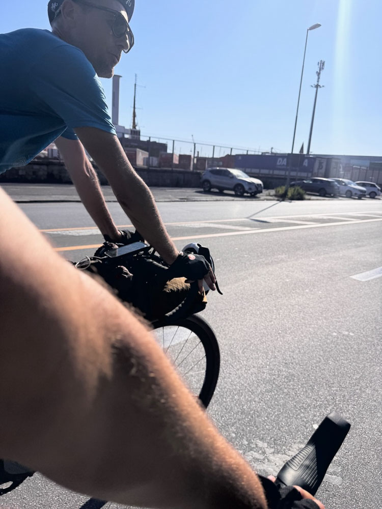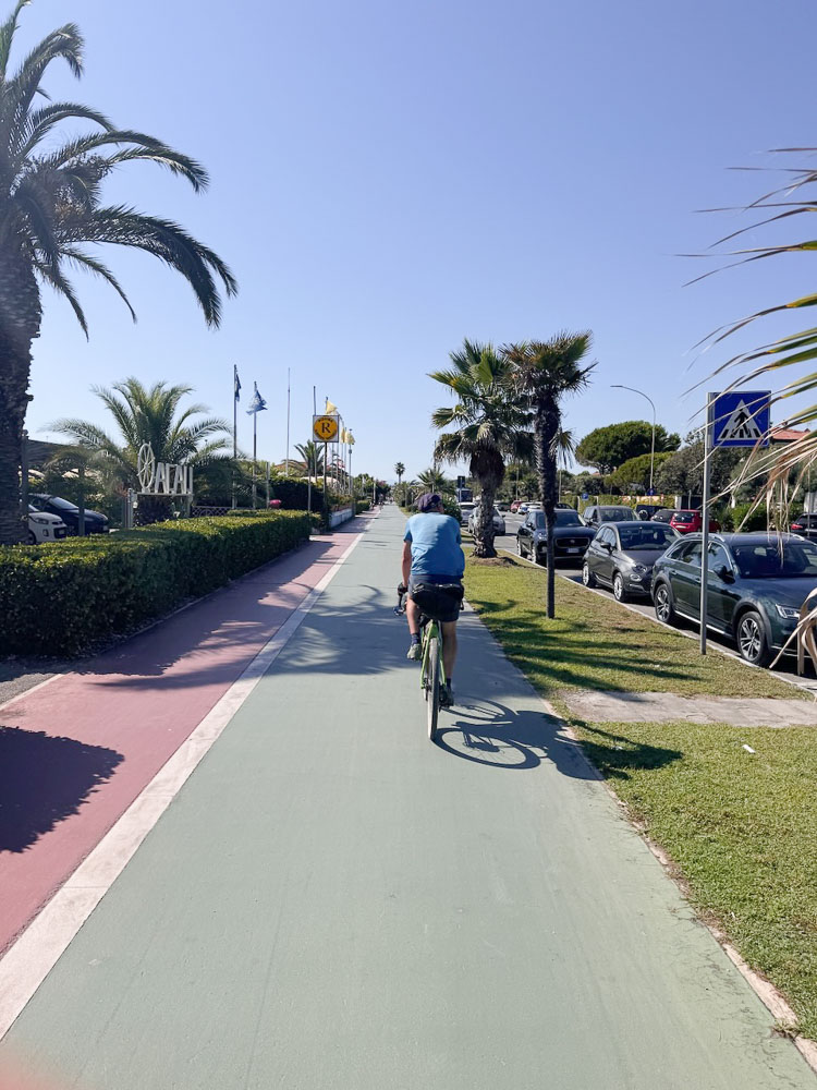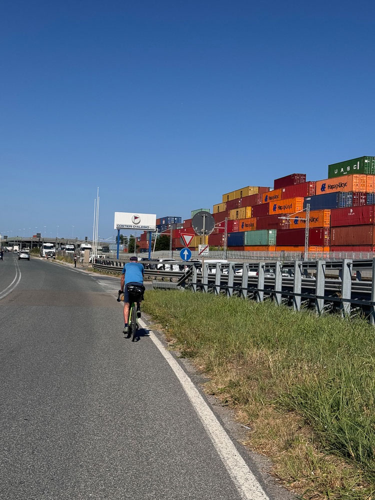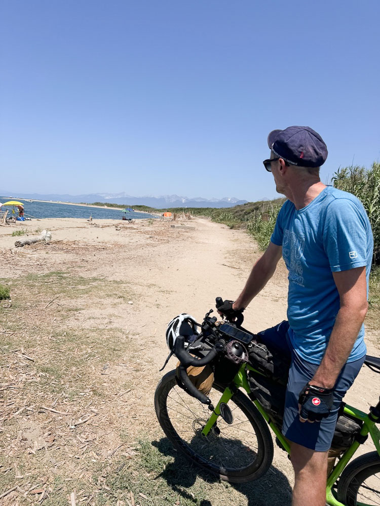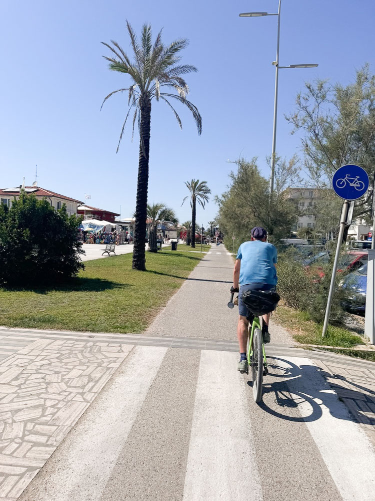 Nach Pisa haben wir verlassene Strände entdeckt, sind 20 km an der Hauptstraße mit 28 – 30 km/h durchg’rauscht, weil wir so‘n Zuckerschub von Cornetto und San Benedetto Eistee hatten. Unser Radler-Profi-Doping!