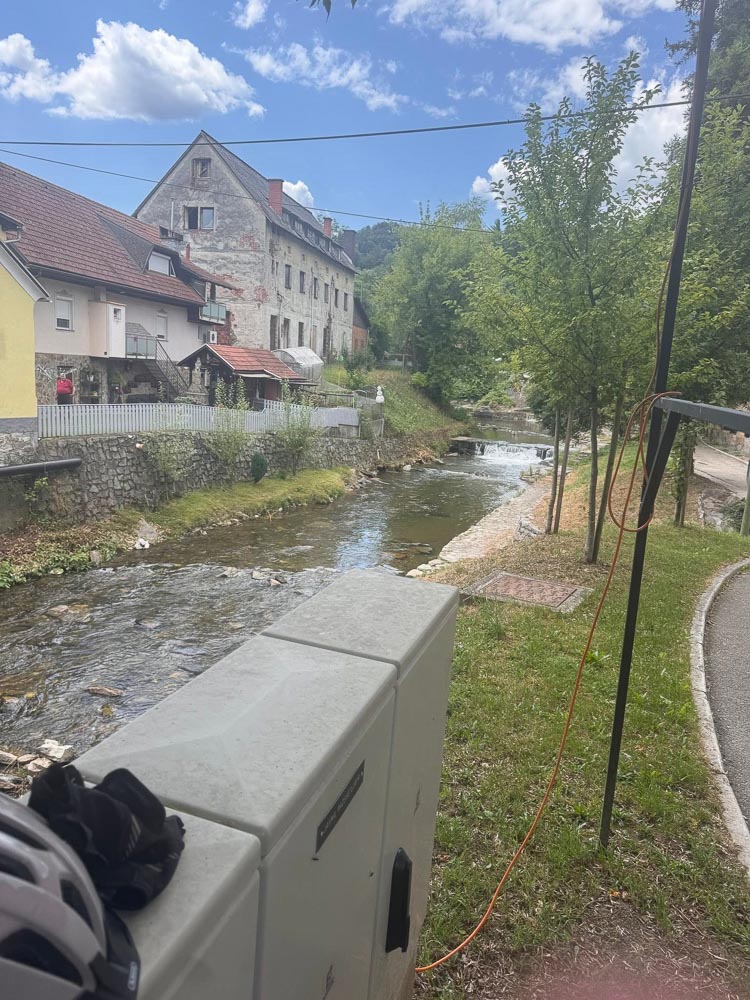 Von Graz nach Bozen mit Rad und Zelt! Jetzt sitze ich kurz vor Völkermarkt auf den Stufen eines regionalen Installateur – über mir blitzt und donnerts.